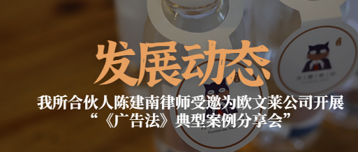 我所合伙人陈建南律师受邀为欧文莱公司开展“《广告法》典型案例分享会”