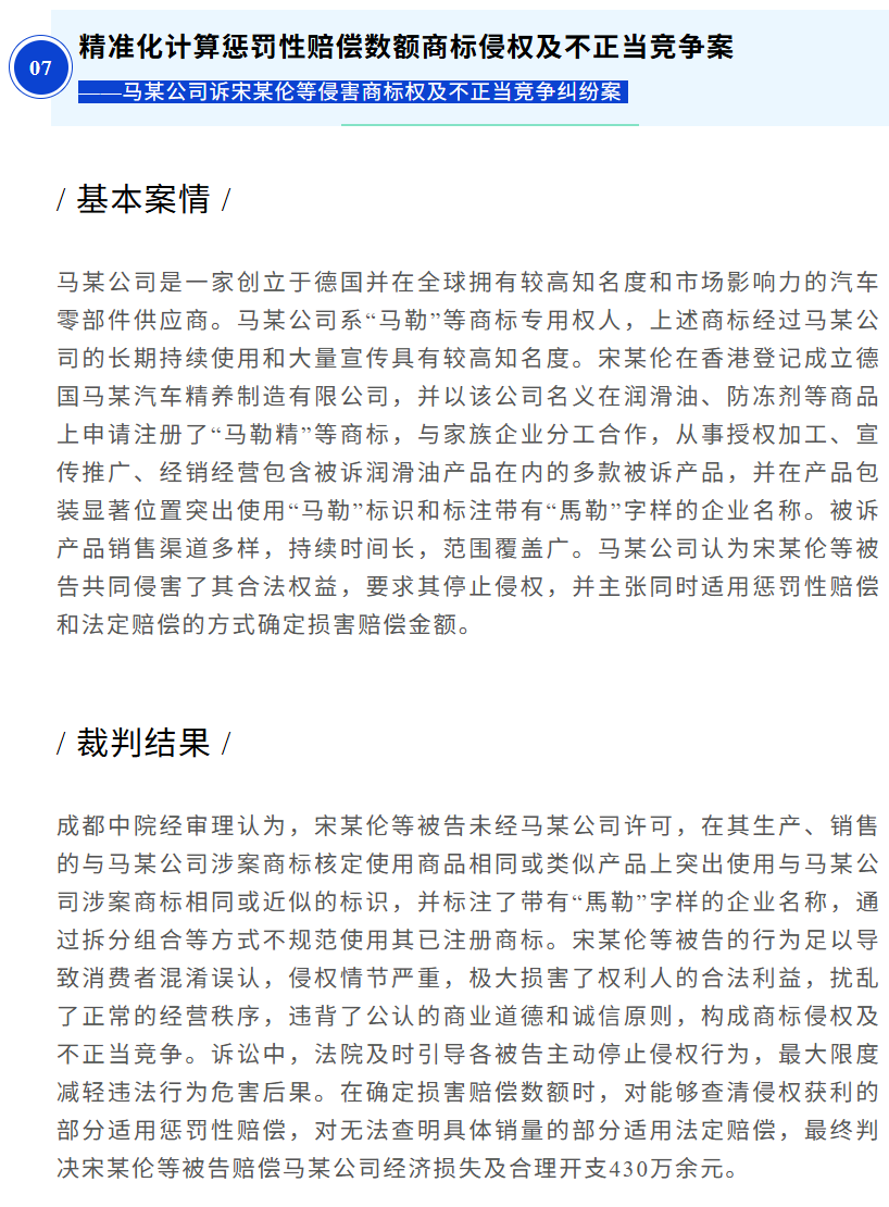 近日,成都中院发布 2025 年度知识产权司法保护白皮书及典型案例,方图所代理的马勒商标侵权及不正当竞争纠纷案成功入选。